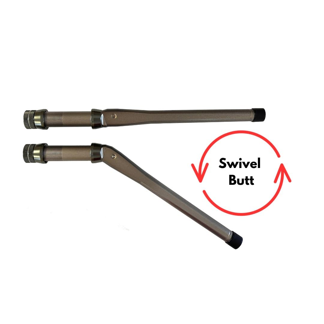 - 旋转枪托可让您通过按一下按钮从弯曲枪托调整为直枪托